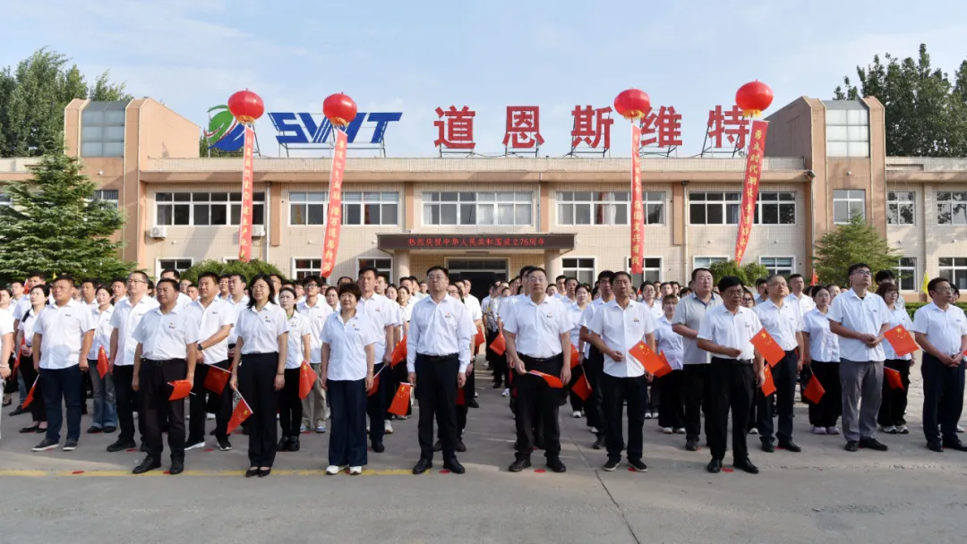 今年是新中国成立76周年,也是中国人民抗日战争暨世界反法西斯战争胜利80周年。10月1日上午,道恩集团在道恩斯维特公司办公楼前广场举行“情系家国 志在争先”国庆主题升旗仪式,以赤诚之心致敬祖国,以奋斗之志共话发展。道恩集团党总支书记、副总裁王永放,道恩集团领导班子成员,各职能部门及驻龙经营单位经理级以上干部,各党支部党员、预备党员、入党积极分子及新入职大学生员工代表300余人参加活动。