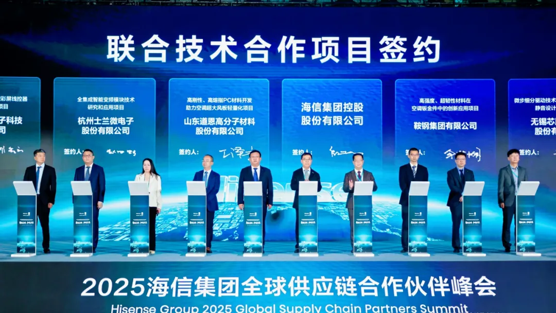 据介绍,海信集团全球供应链合作伙伴峰会,以“智链全球,韧性共生”为主题,重点聚焦低碳创新与全球供应链协同,强调智能化与供应链韧性建设。海信集团党委书记、董事长贾少谦出席会议,海信空气产业(筹)总裁殷必彤共同参加签约仪式,超4500家供应链伙伴参与全球协同。