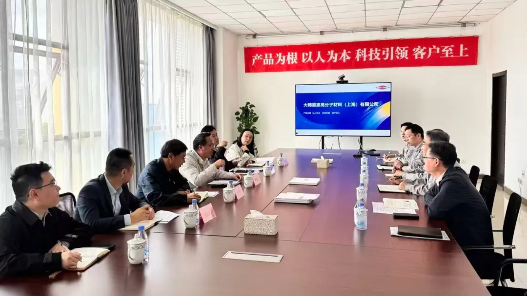 10月21日,上海市奉贤区委副书记唐晓腾到大韩道恩高分子材料(上海)有限公司调研,奉贤区科委党组书记卫丙戊,杭州湾公司党委副书记、总经理俞文华及奉贤区经委、投促办、通用新材料工作专班有关负责同志参加调研。大韩道恩(上海)公司总经理杨书海陪同调研。