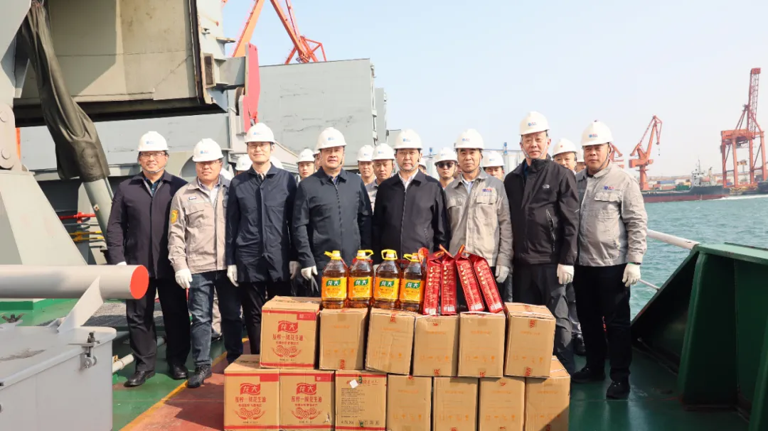 仪式结束后,工会领导与船员代表进行亲切交流,详细了解船员工作日常和海上生活情况,认真听取大家在航行中的经历与需求,送上了花生油、大米等生活物资,“道恩167”轮船长刘忠发感慨:“既有精神食粮,又有生活补给,这份关怀很实在!”