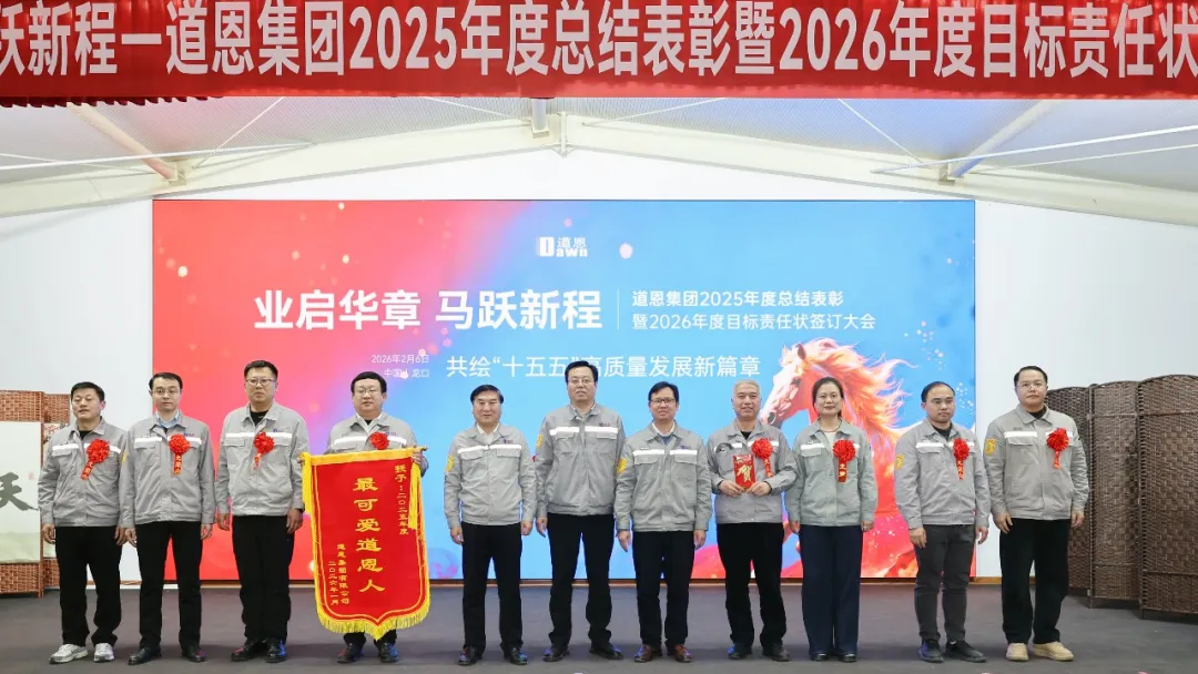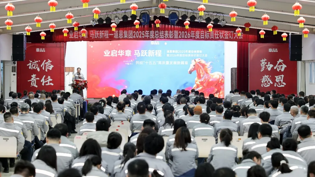 2月6日,道恩集团在道恩商学院召开主题为“业启华章 马跃新程”的2025年度总结表彰暨2026年度目标责任状签订大会,旨在总结得失,研判形势,表彰先进,激励全体干部员工接续奋斗,推动企业健康发展、高质量发展。会议在山东龙口设主会场,在海内外设11个视频分会场,道恩集团董事长、总裁于晓宁出席会议并讲话。