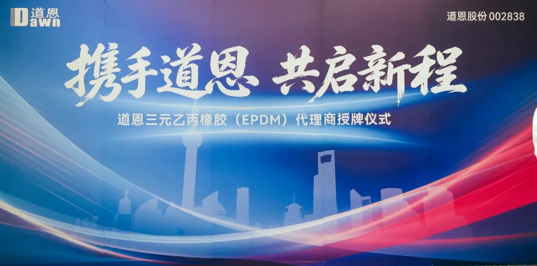 展会首日当晚,道恩股份举行EPDM代理商授牌仪式,“我们将与大家一起,将EPDM业务推向家电、汽车、轨道交通等更广阔的高端市场,以更高效低碳的解决方案,共同打造最具竞争力的产业生态,共享新材料发展的黄金时代。”道恩股份总经理田洪池表示。